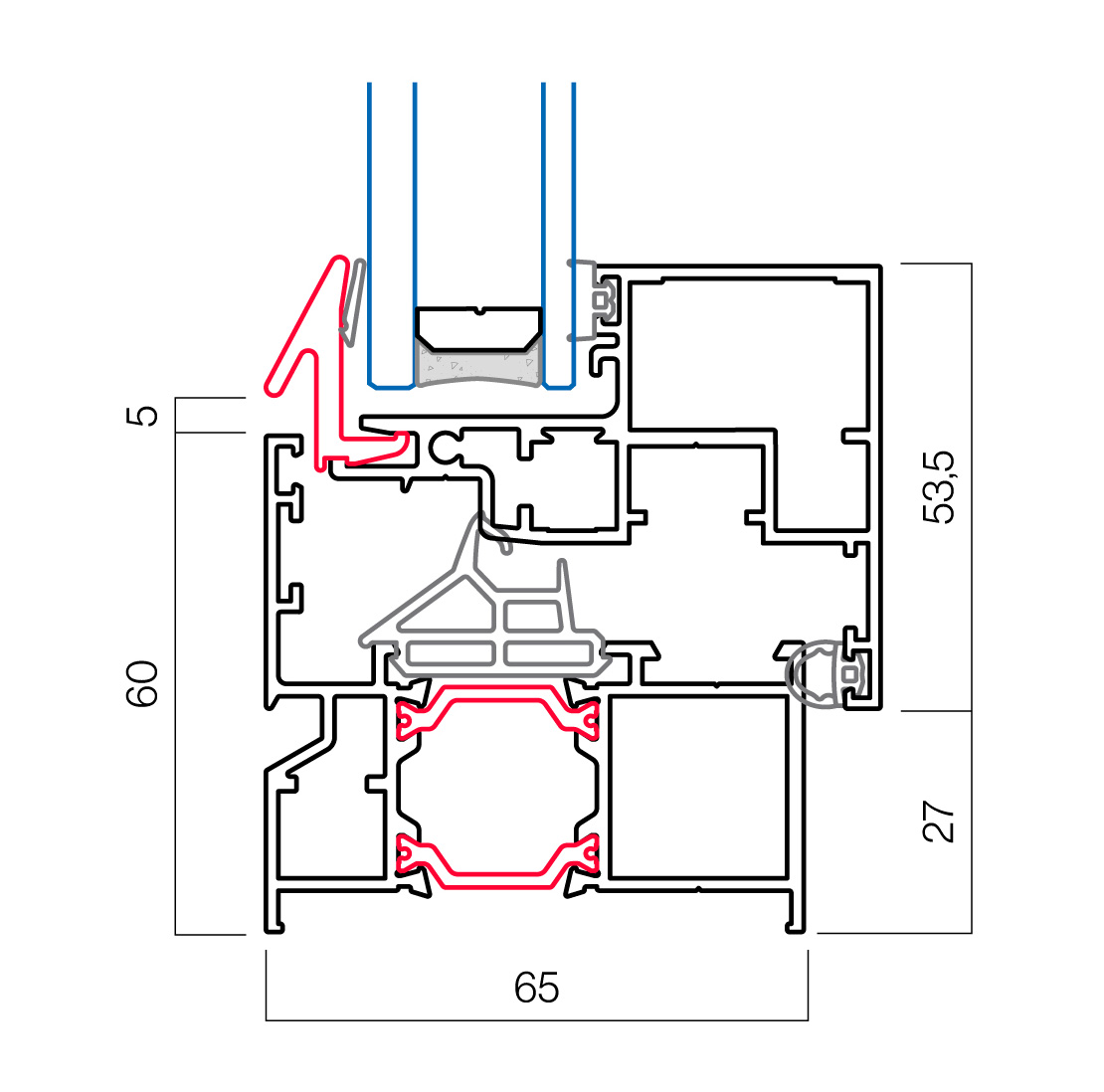 Información Técnica| Sección de marco/hoja | 65 / 66,5 mm |