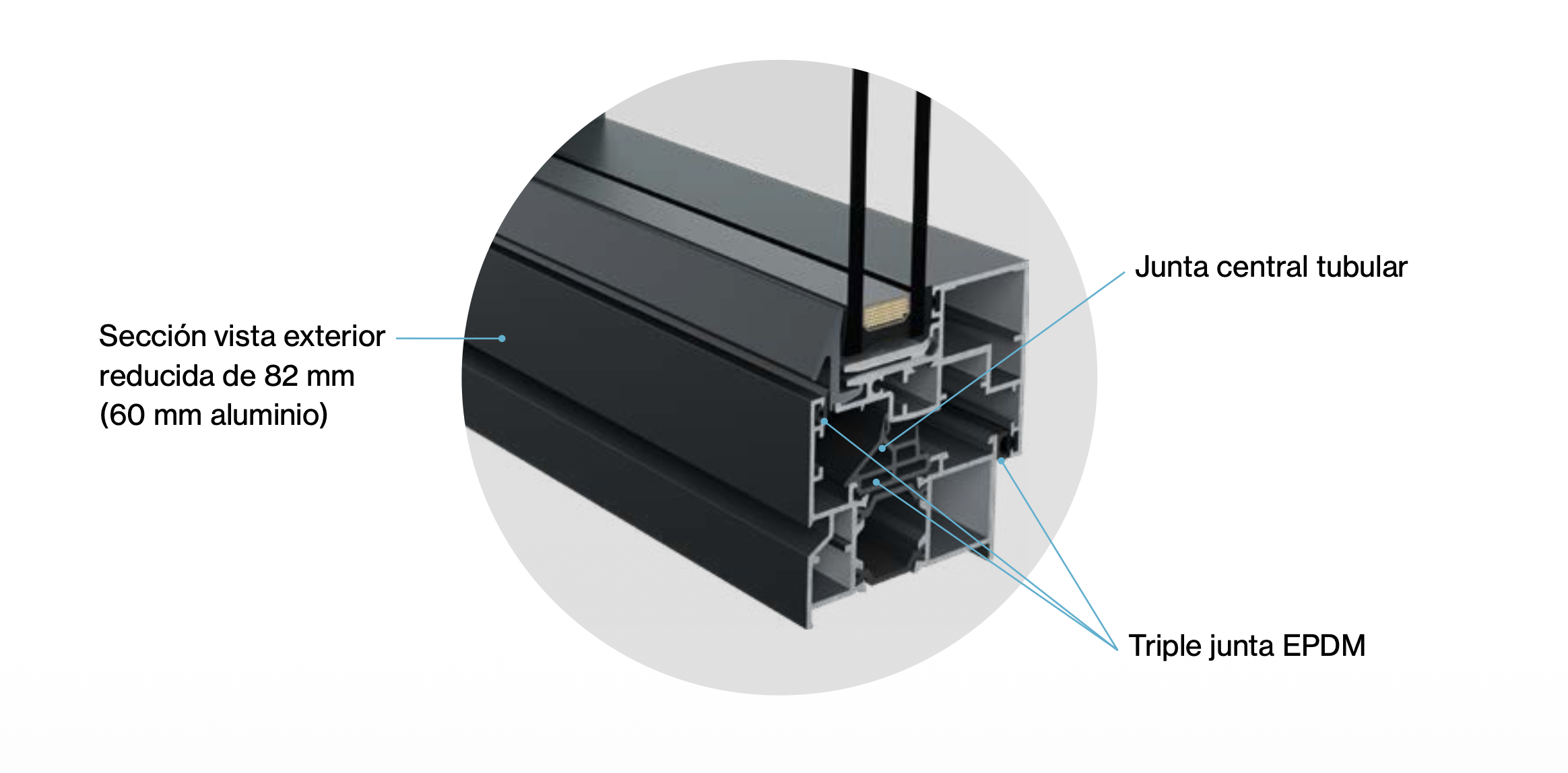 82 mm (solo 60 mm de aluminio en vista exterior) |
