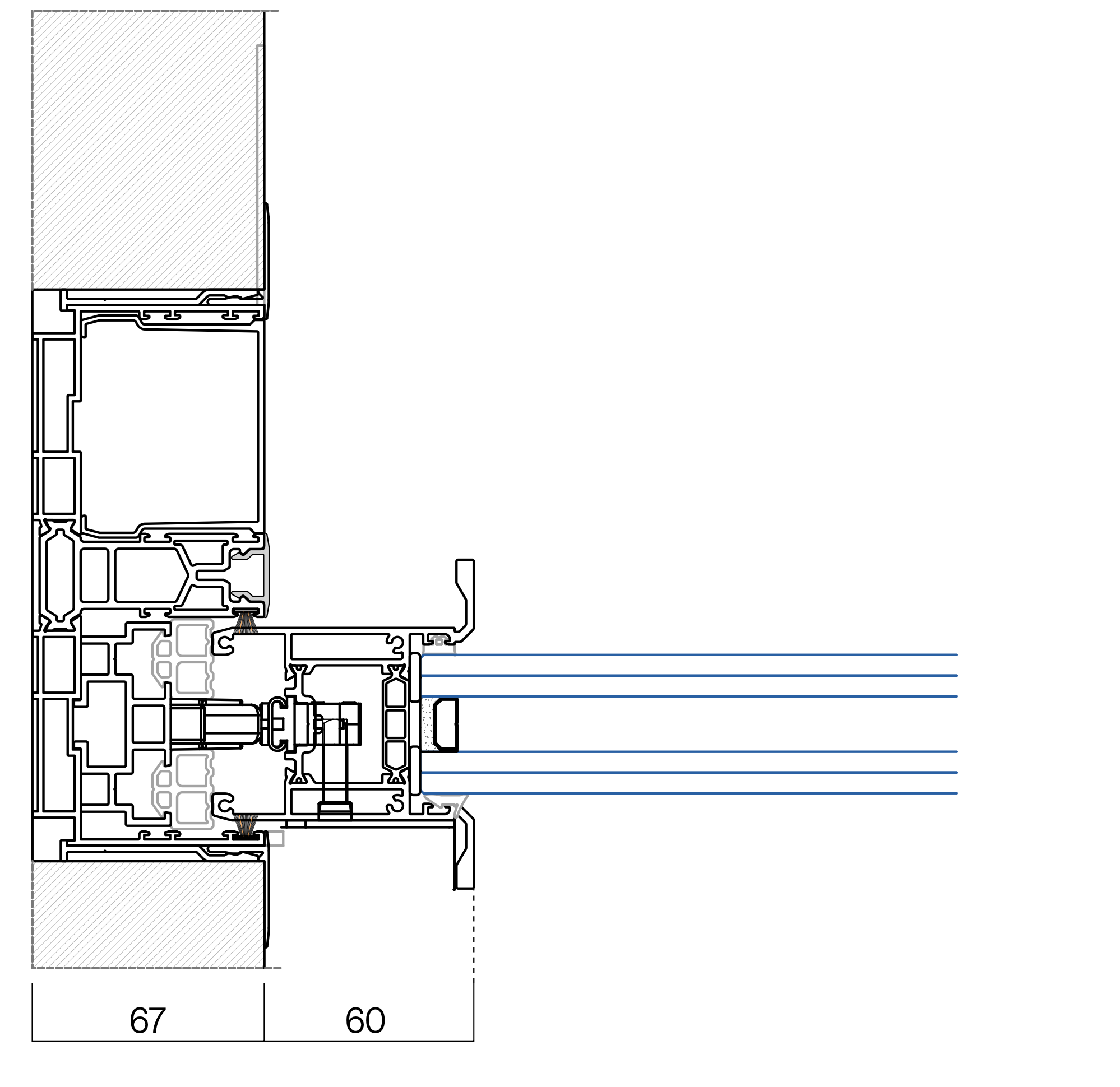 Información Técnica| Sección de marco/hoja | 67 mm / 75 mm |