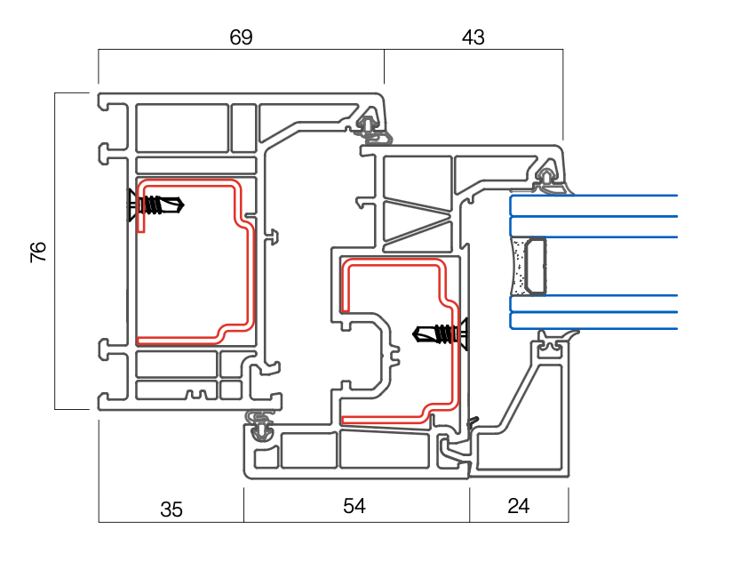 Información Técnica| Sección de marco/hoja | 76 / 80 mm |