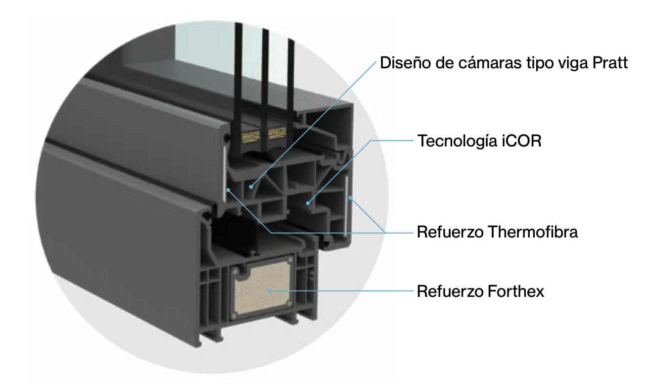 | Sistema de aislamiento | Sistema forthex en marcos y Thermofibra |
