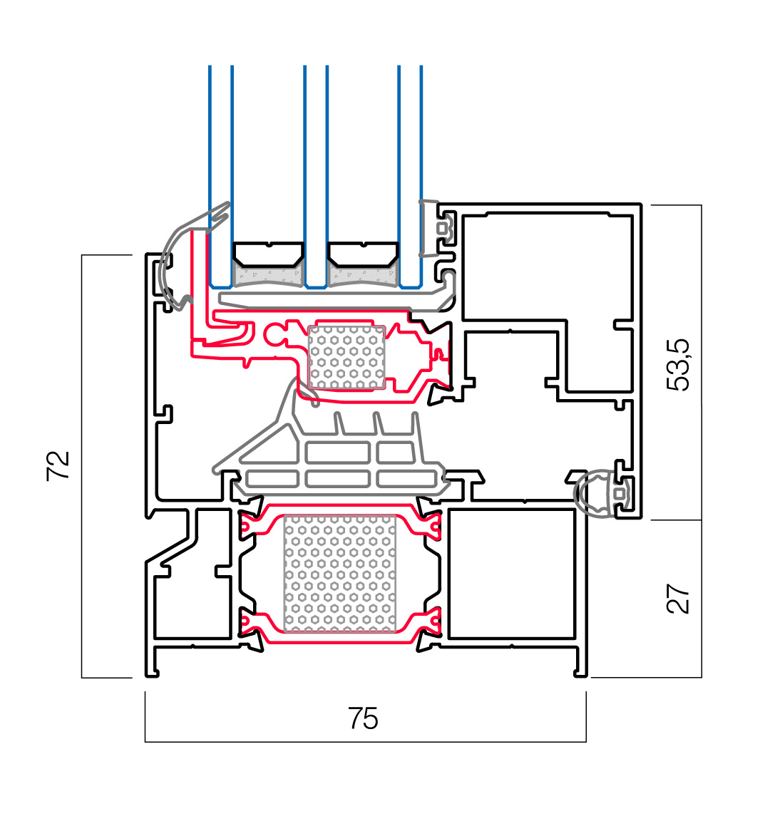 Información Técnica| Sección de marco/hoja | 75 / 76,5 mm |