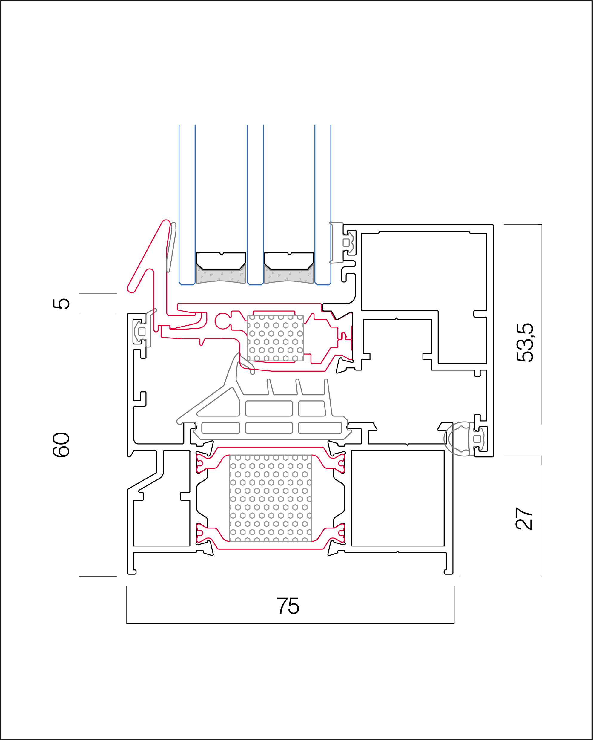 Información Técnica| Sección de marco/hoja | 75 / 76,5 mm |